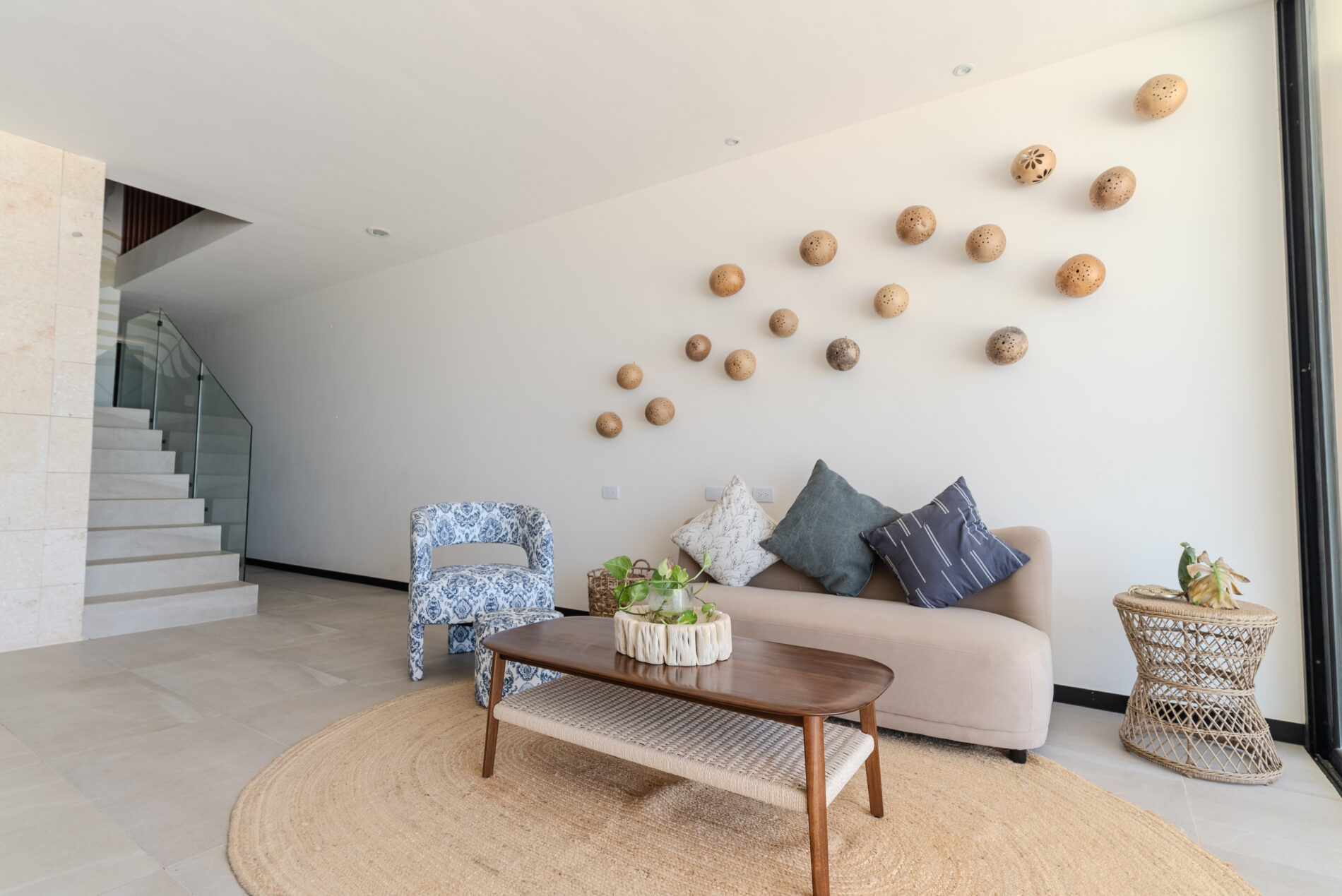 -Barandales en la escalera de vidrio templado.