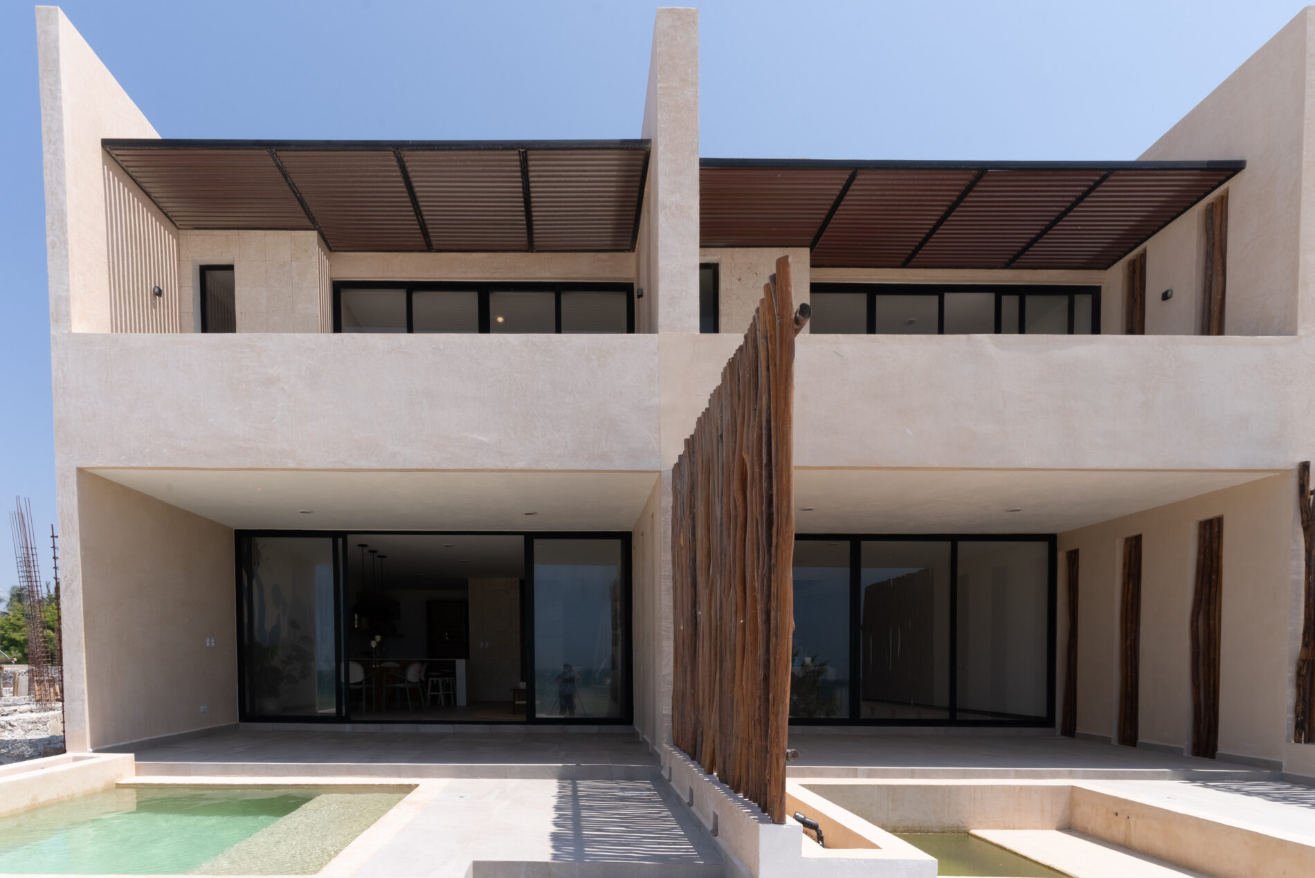 -Detalles de rollizos de madera en la terraza.