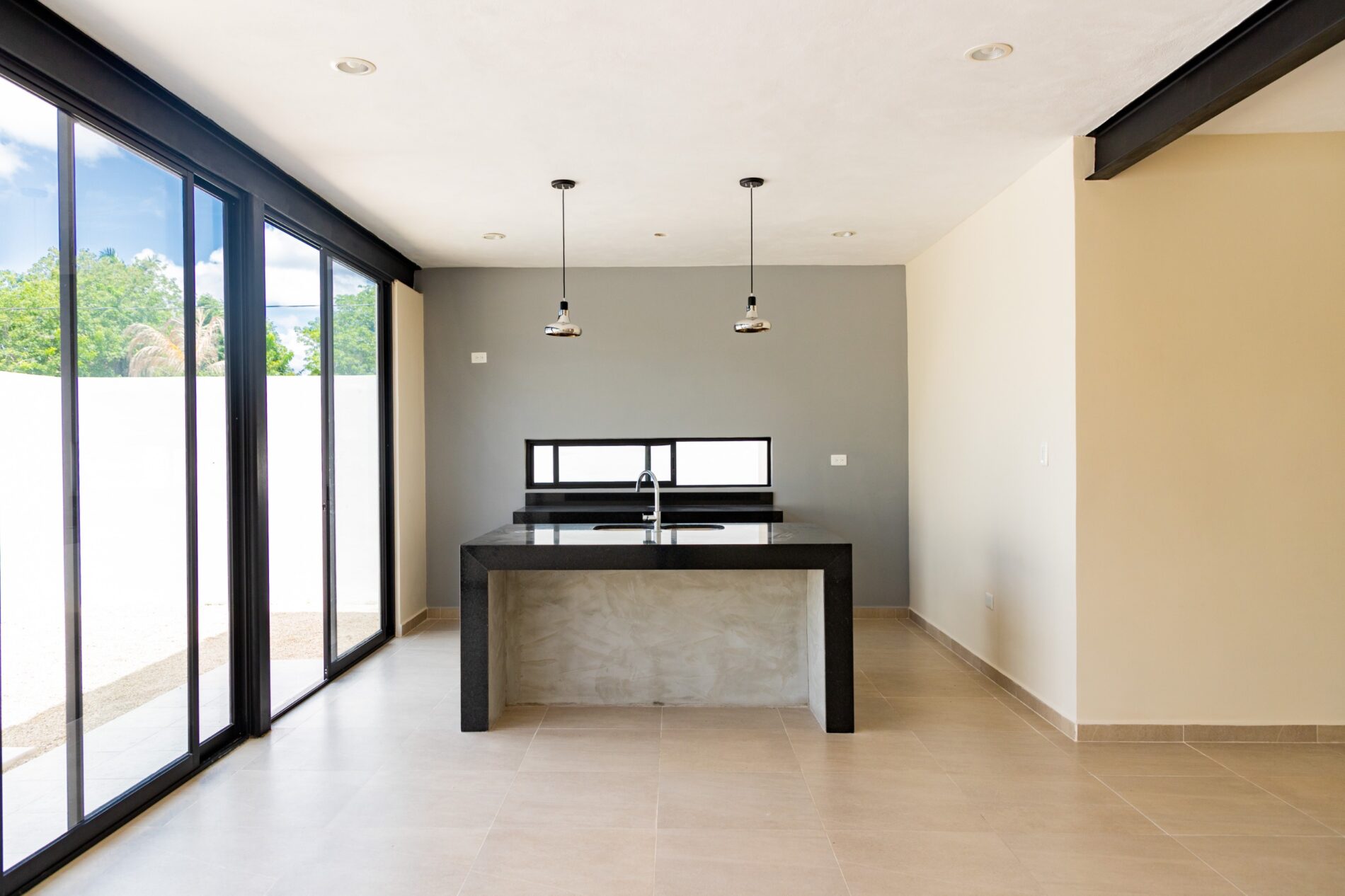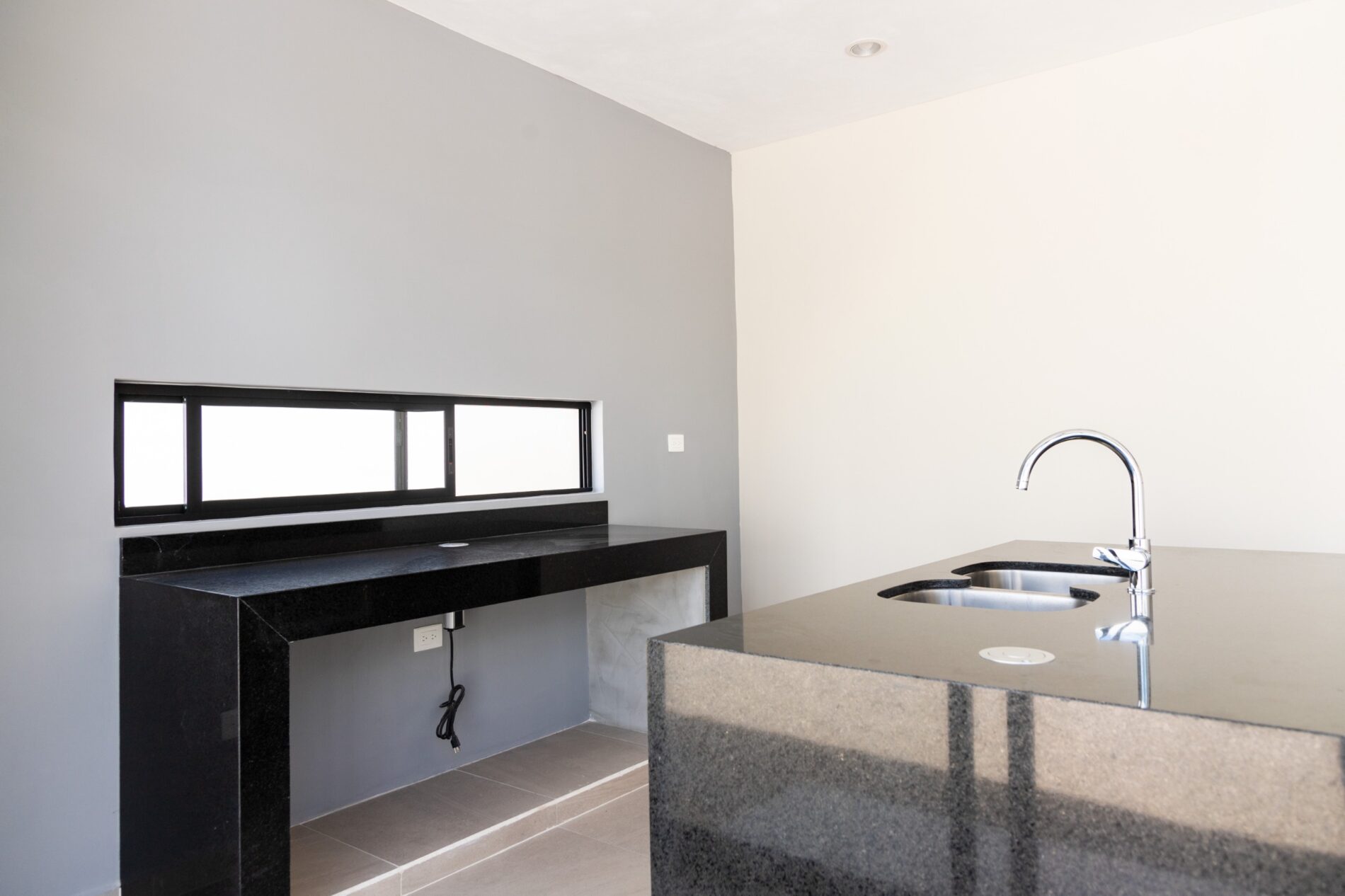 • Cocina con isla de granito san Gabriel con una contrabarra en granito