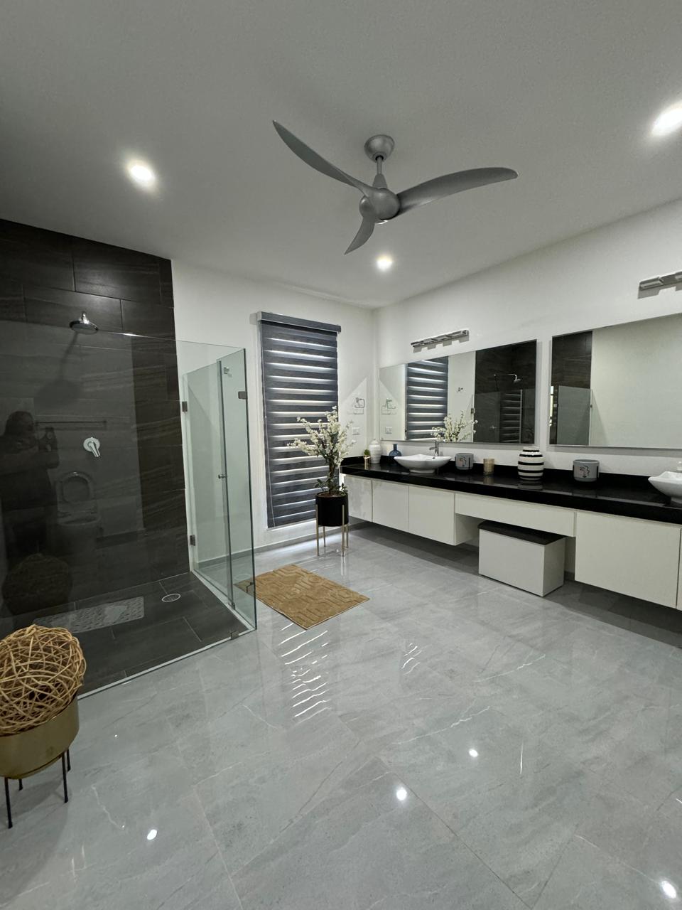 *TODOS LOS BAÑOS TRAEN OTRO CRISTAL TEMPLADO EN LA DUCHA, GABINETES DE MADERA, ESPEJO Y LÁMPARA DECORATIVA