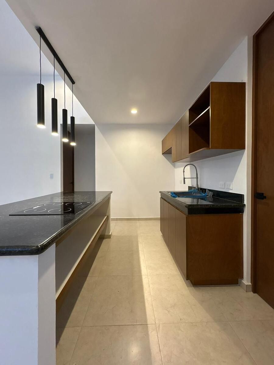 -Cocina amplia vestida (carpintería natural) con barra