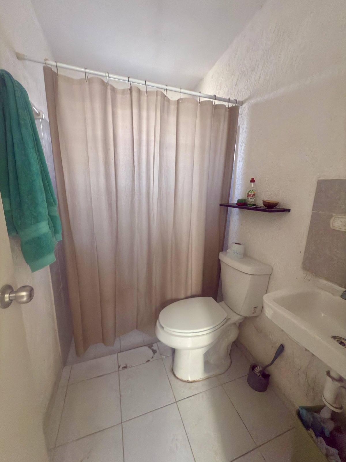 Cocina completa con barra desayunadora y espacio para alacena de pared