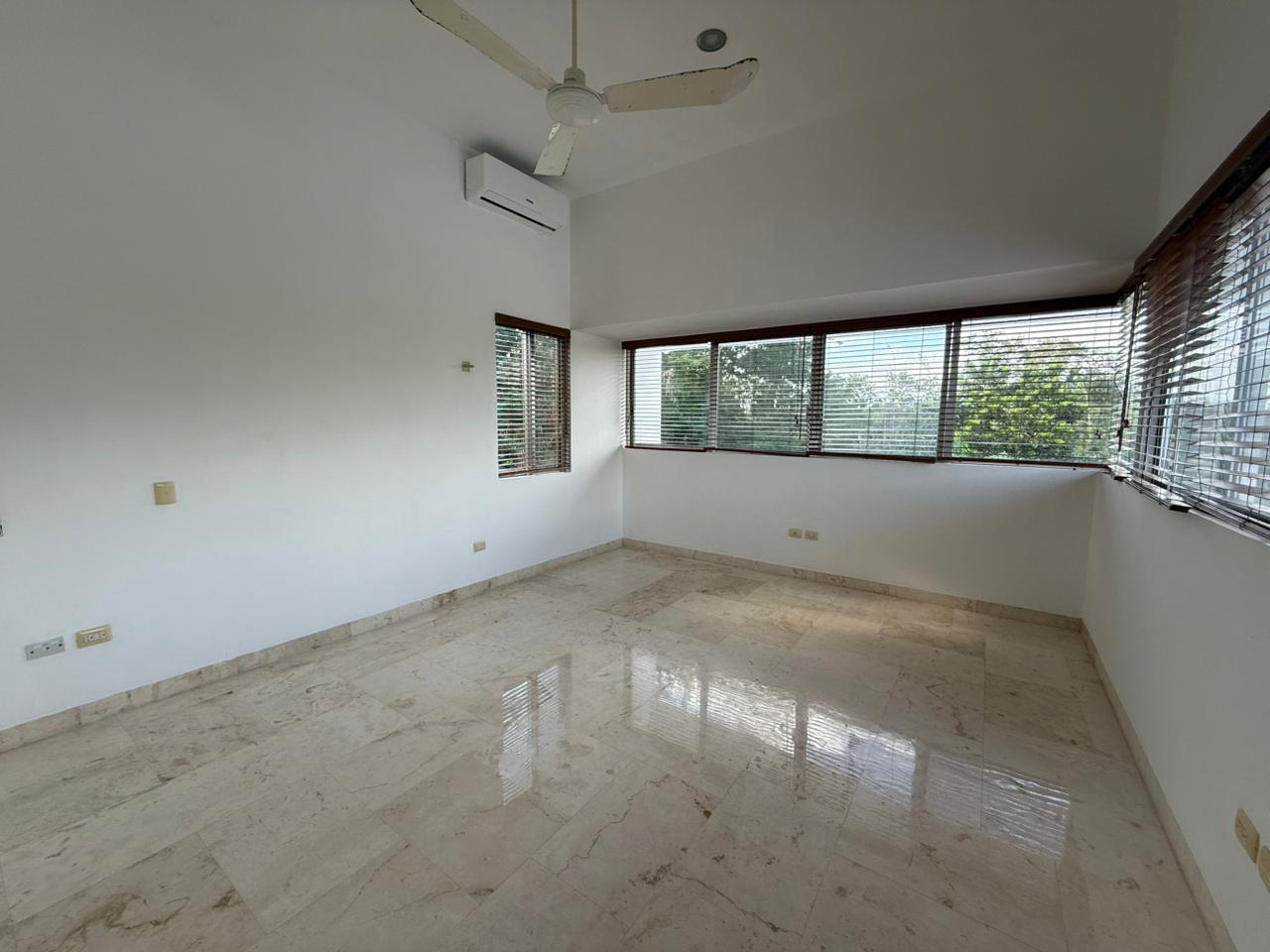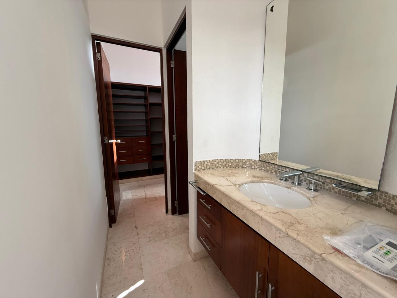 – Recámara principal: Doble lavabo, walking clóset, a/c y ventilador.