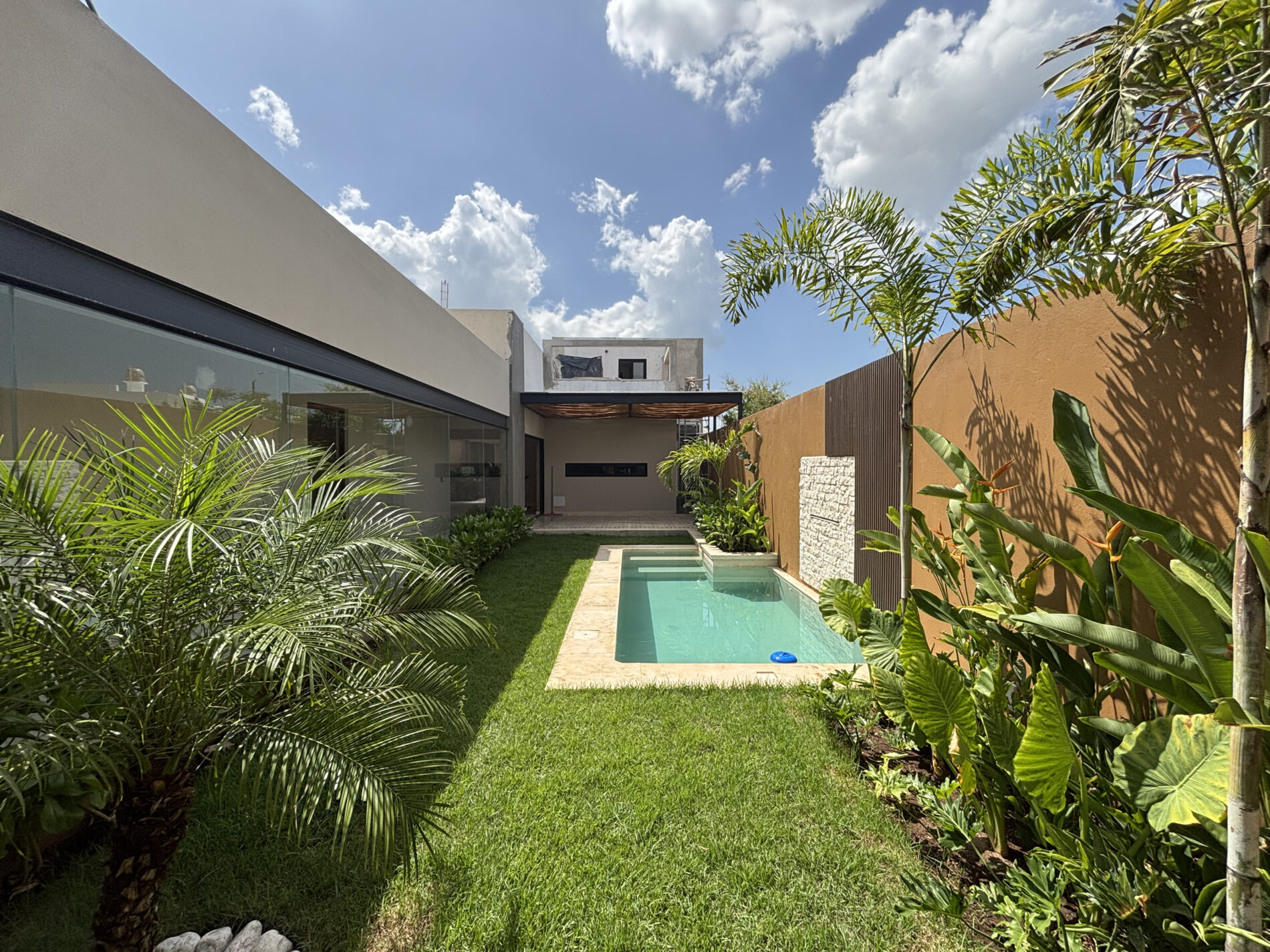 Resalta el paisajismo de su jardín interior como un espacio de meditación y contemplación +una alberca con cascada para relajación y entretenimiento.