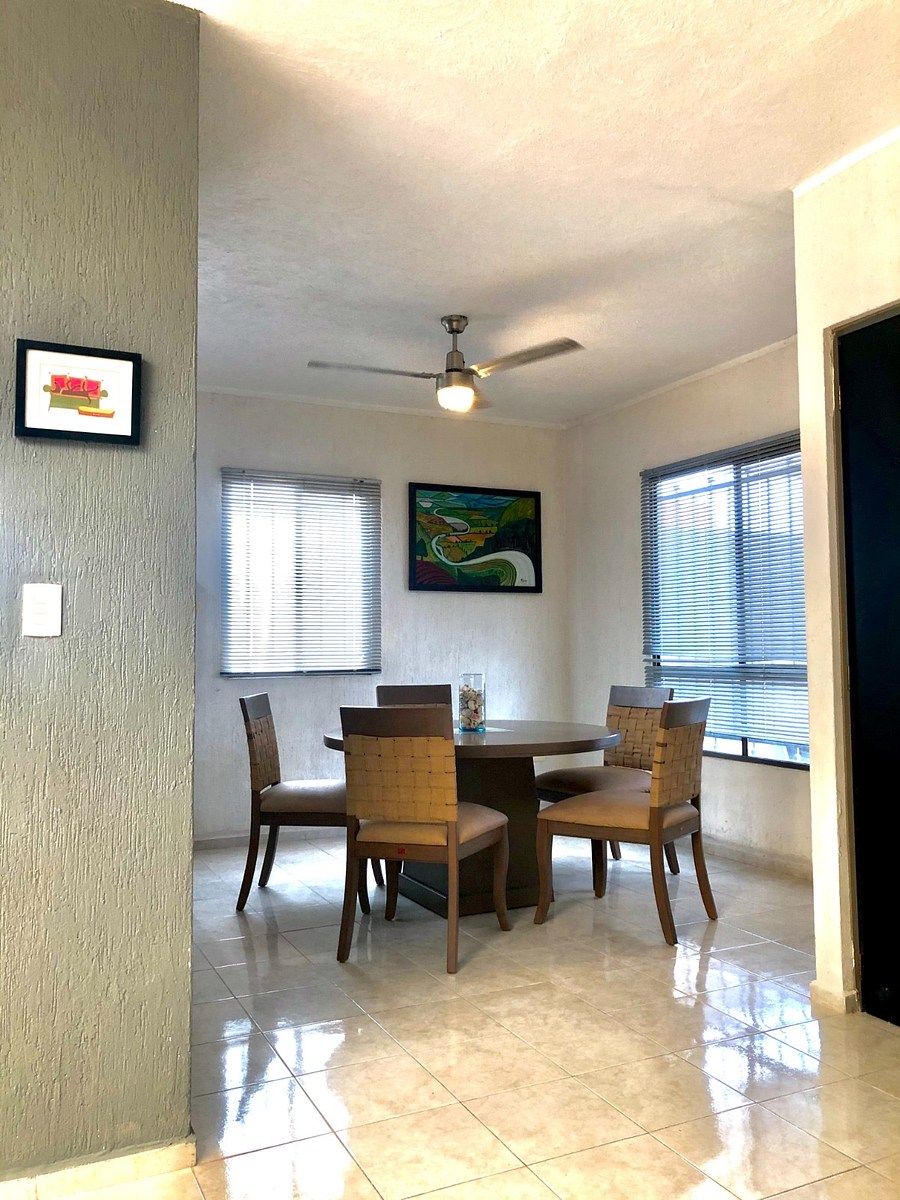 Casa de una sola planta, totalmente amueblada, ubicada al norte de Mérida, Yucatán, en el fraccionamiento Las Américas II. A pocos minutos de zonas comerciales, colegios y universidades, con fácil acceso a transporte público, parques y restaurantes.