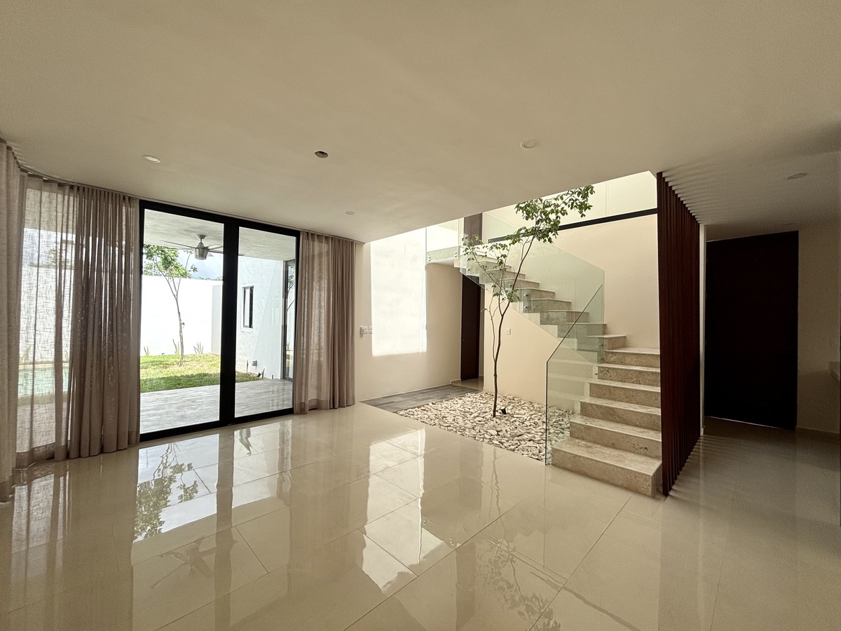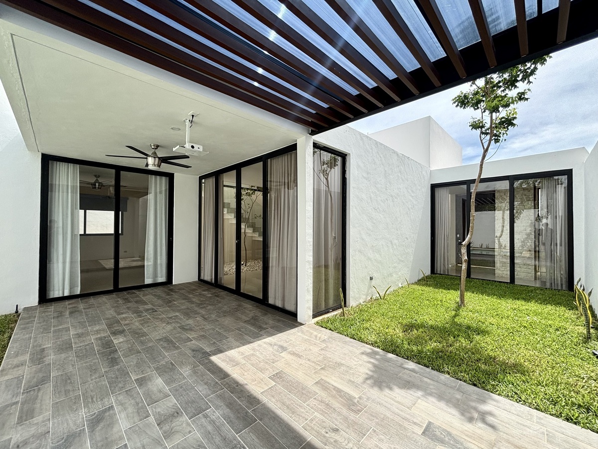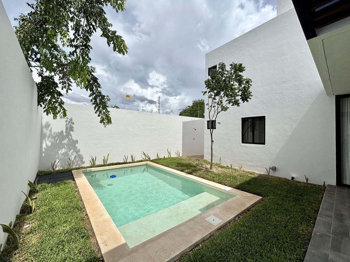 – Alberca con acabado chukum y áreas de pasto en rollo en el jardín frontal y piscina
