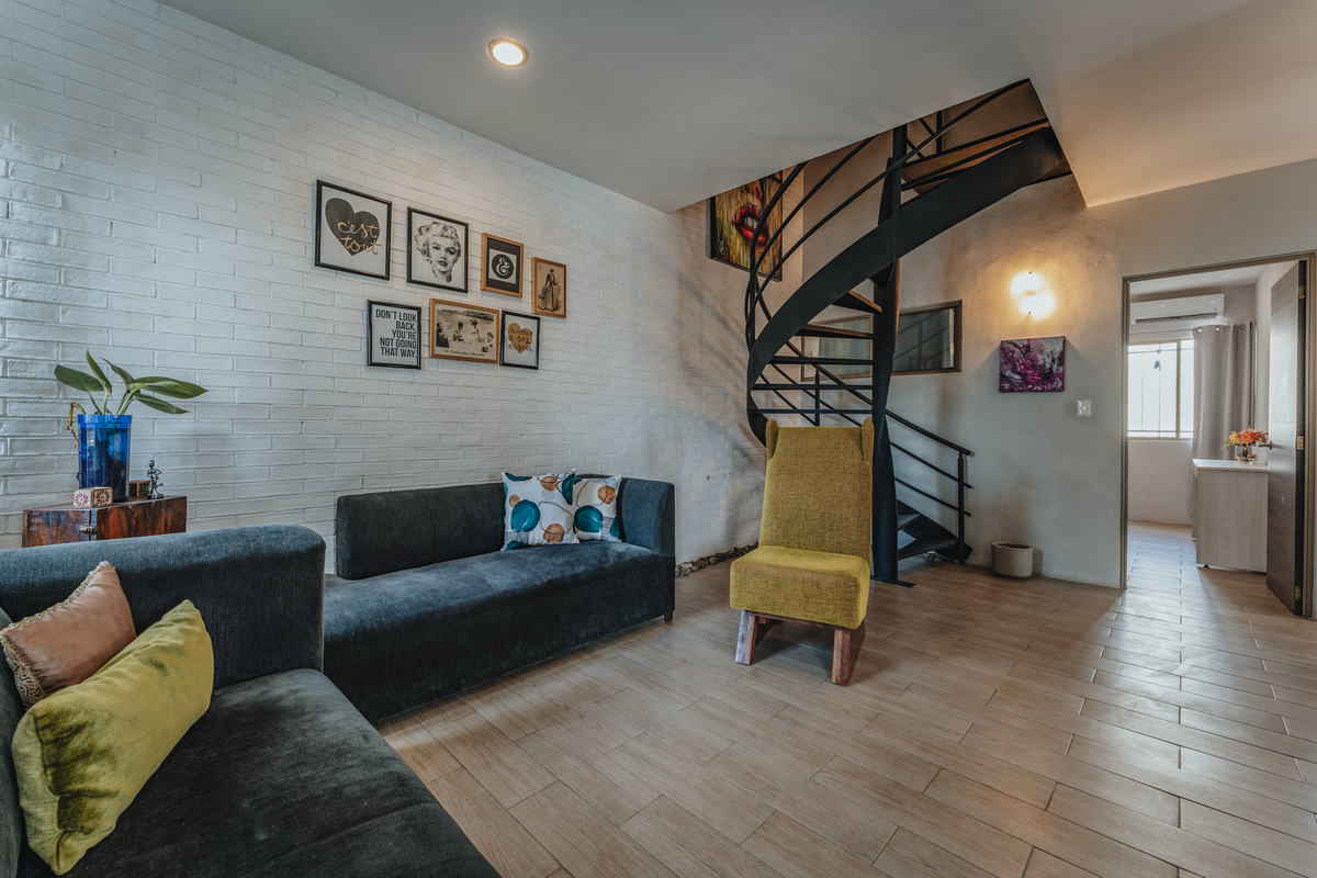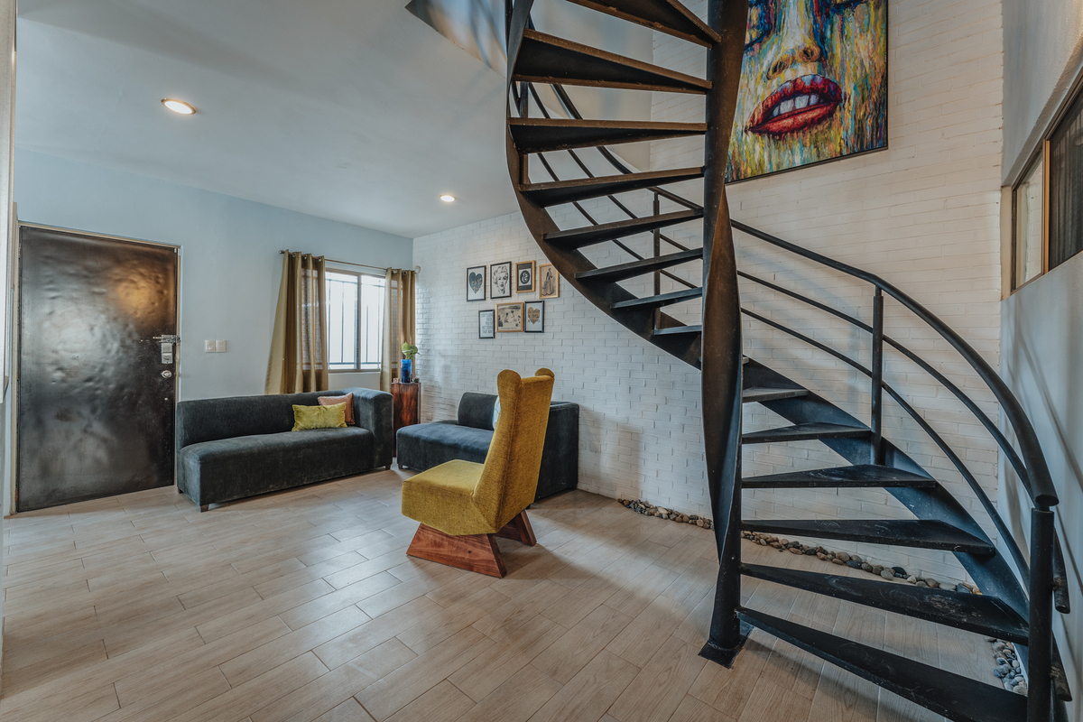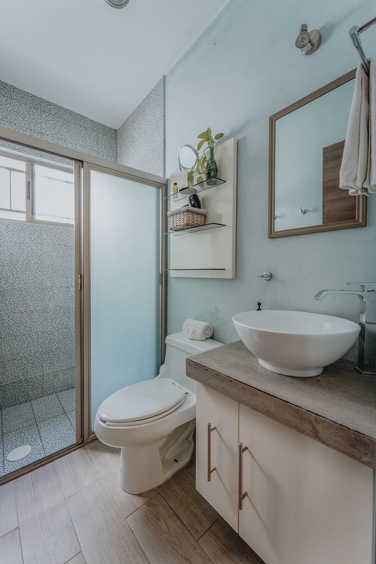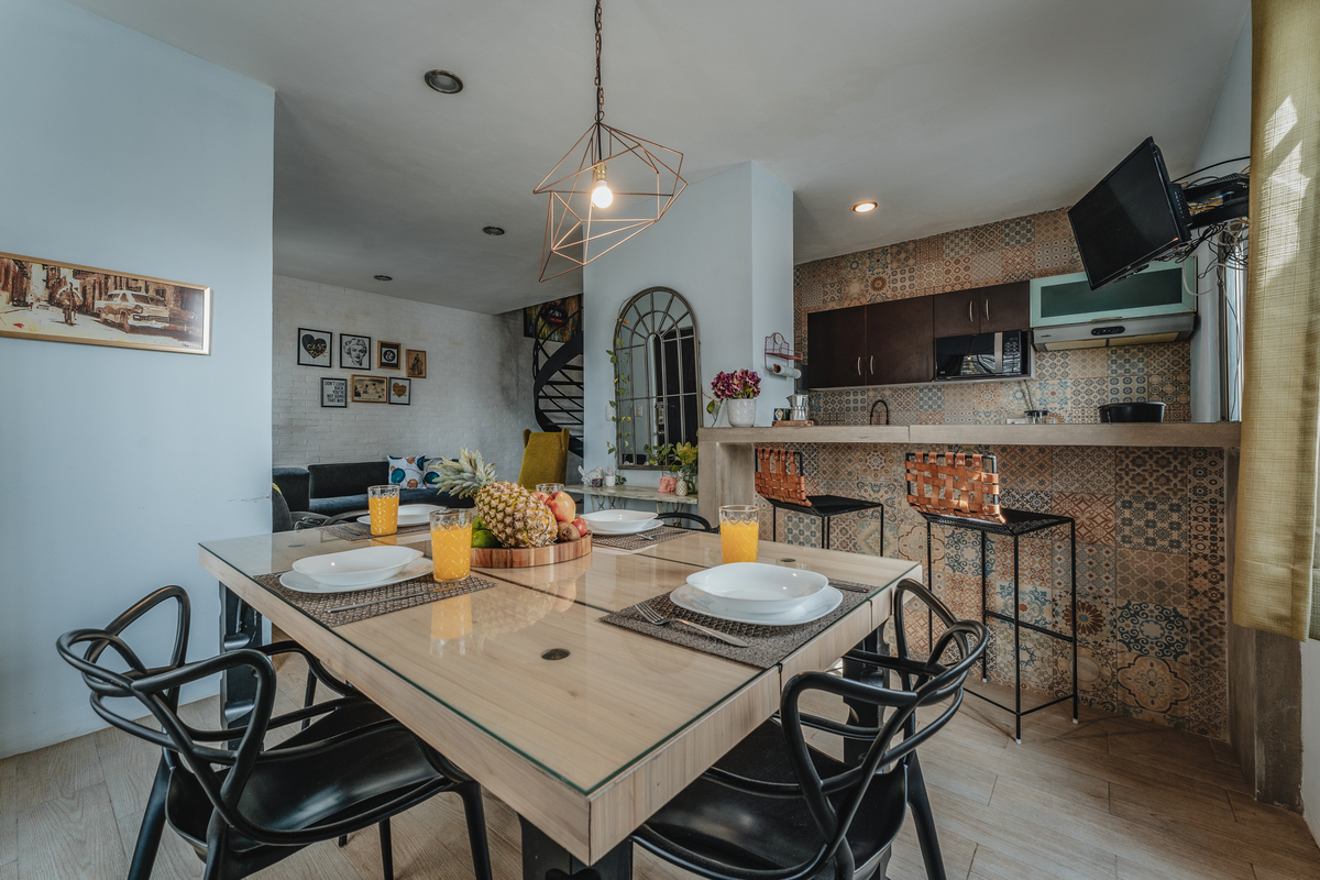 -Habitación principal con baño propio, jacuzzi con acabado de chukum, cancel de vidrio templado y clóset vestidor.