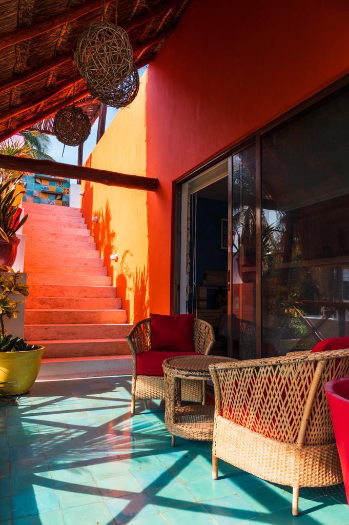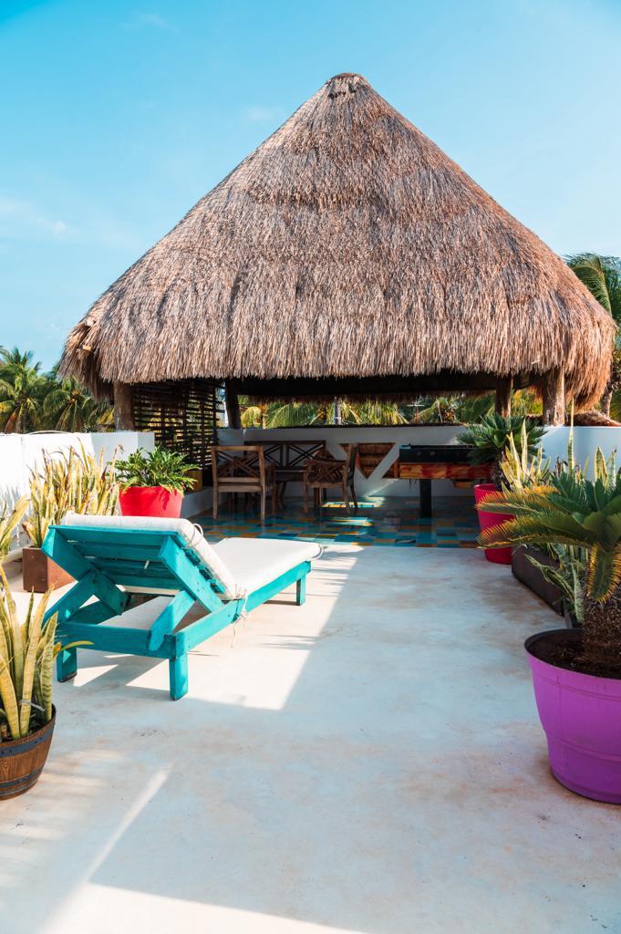 -Acceso al Roof Top desde la planta baja, cuenta el área con palapa y una sala, cada terraza tiene luz y amaqueros.