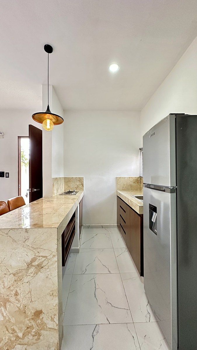 El departamento cuenta con 1 habitación, 1 baño completo y cocina equipada, la cual incluye refrigerador nuevo. Espacios funcionales, bien distribuidos y listos para habitar.
