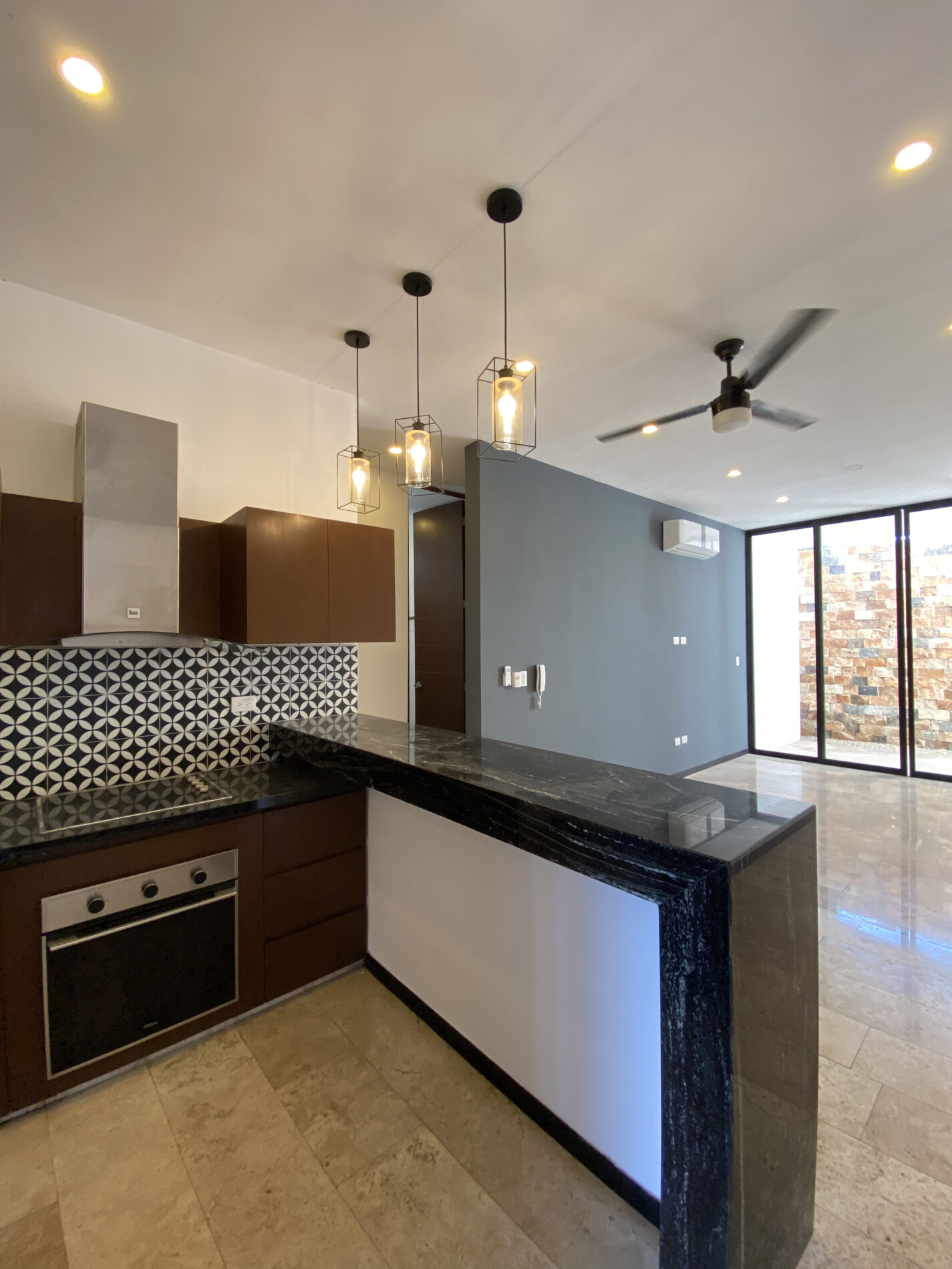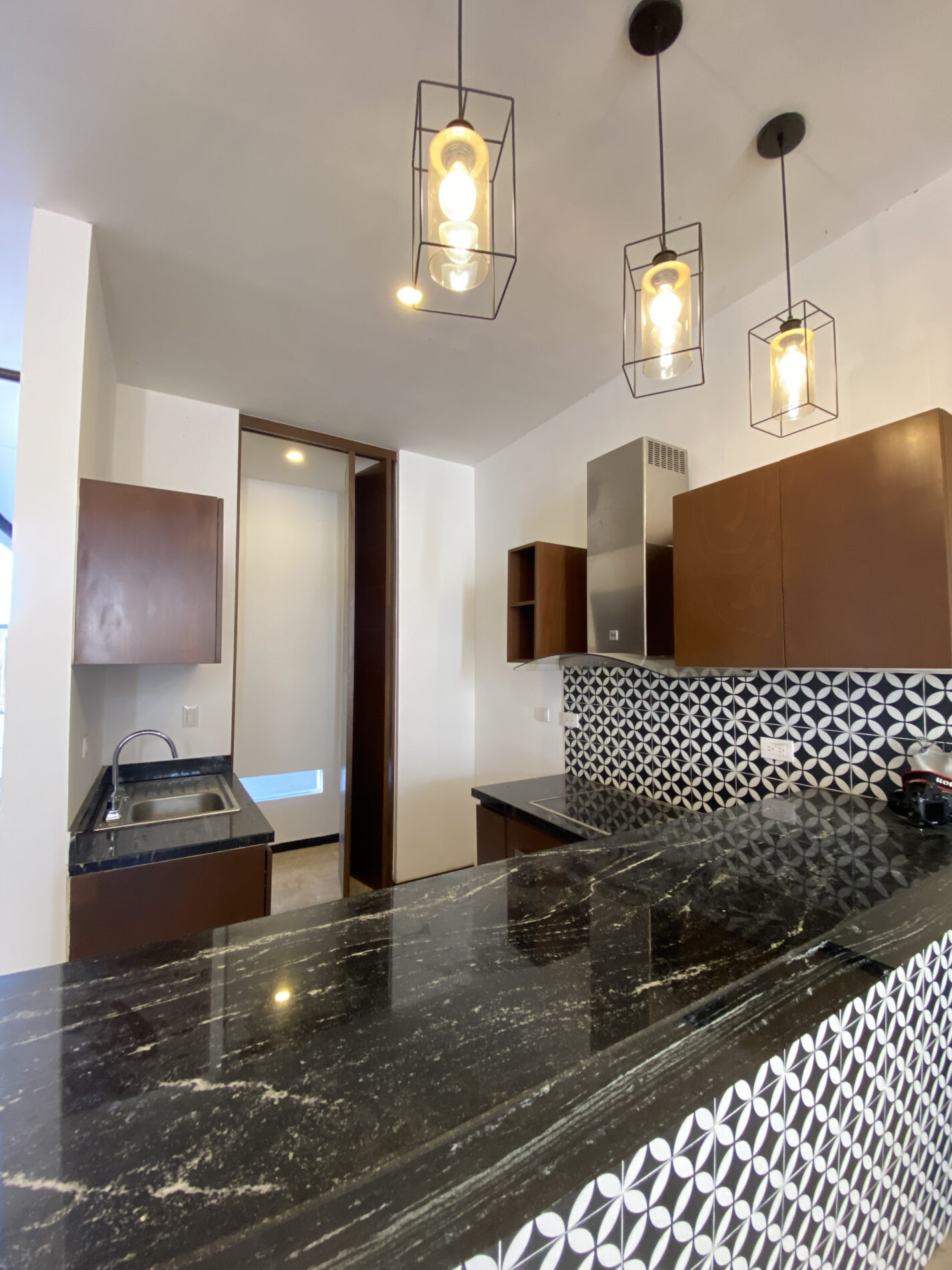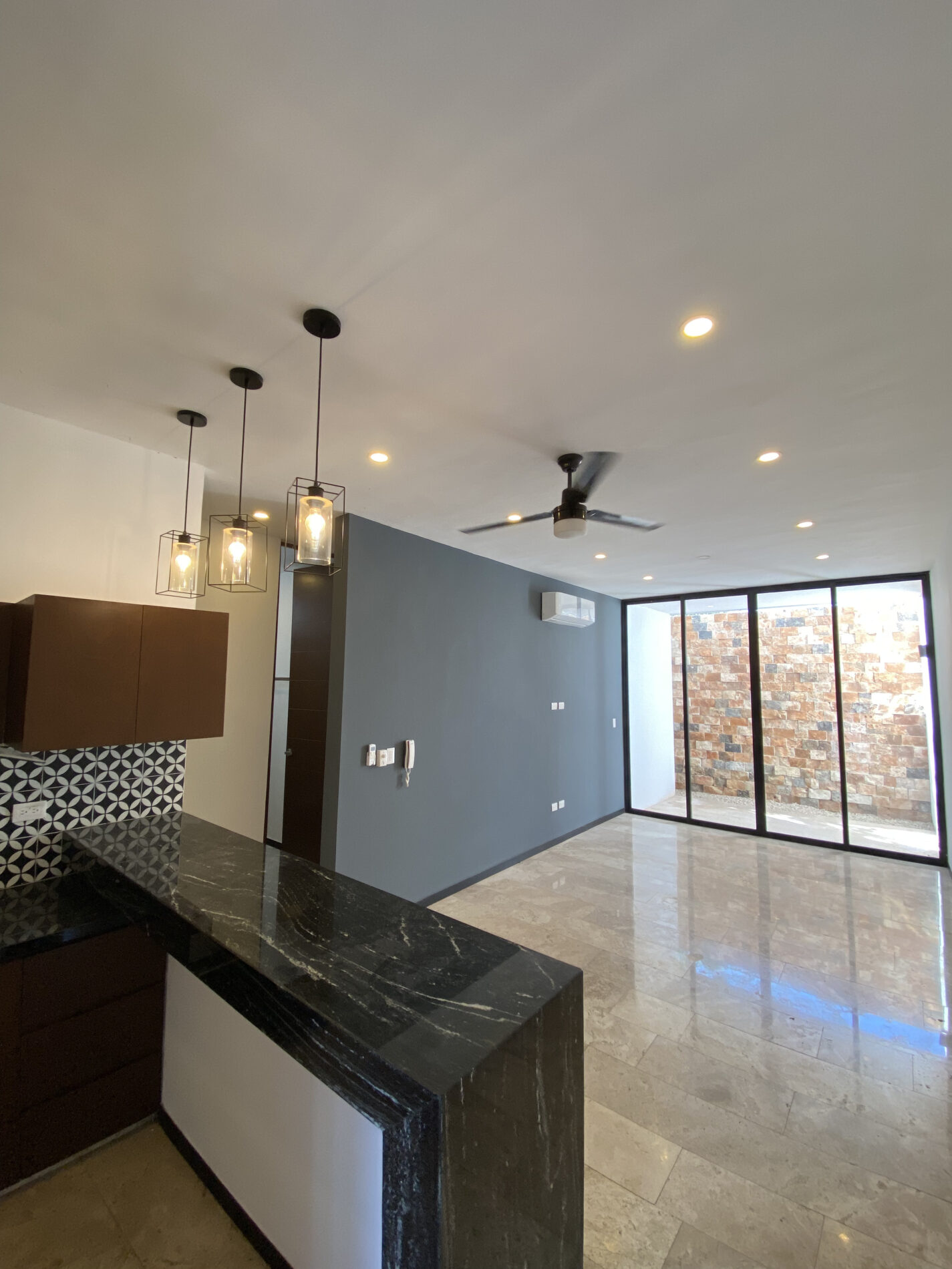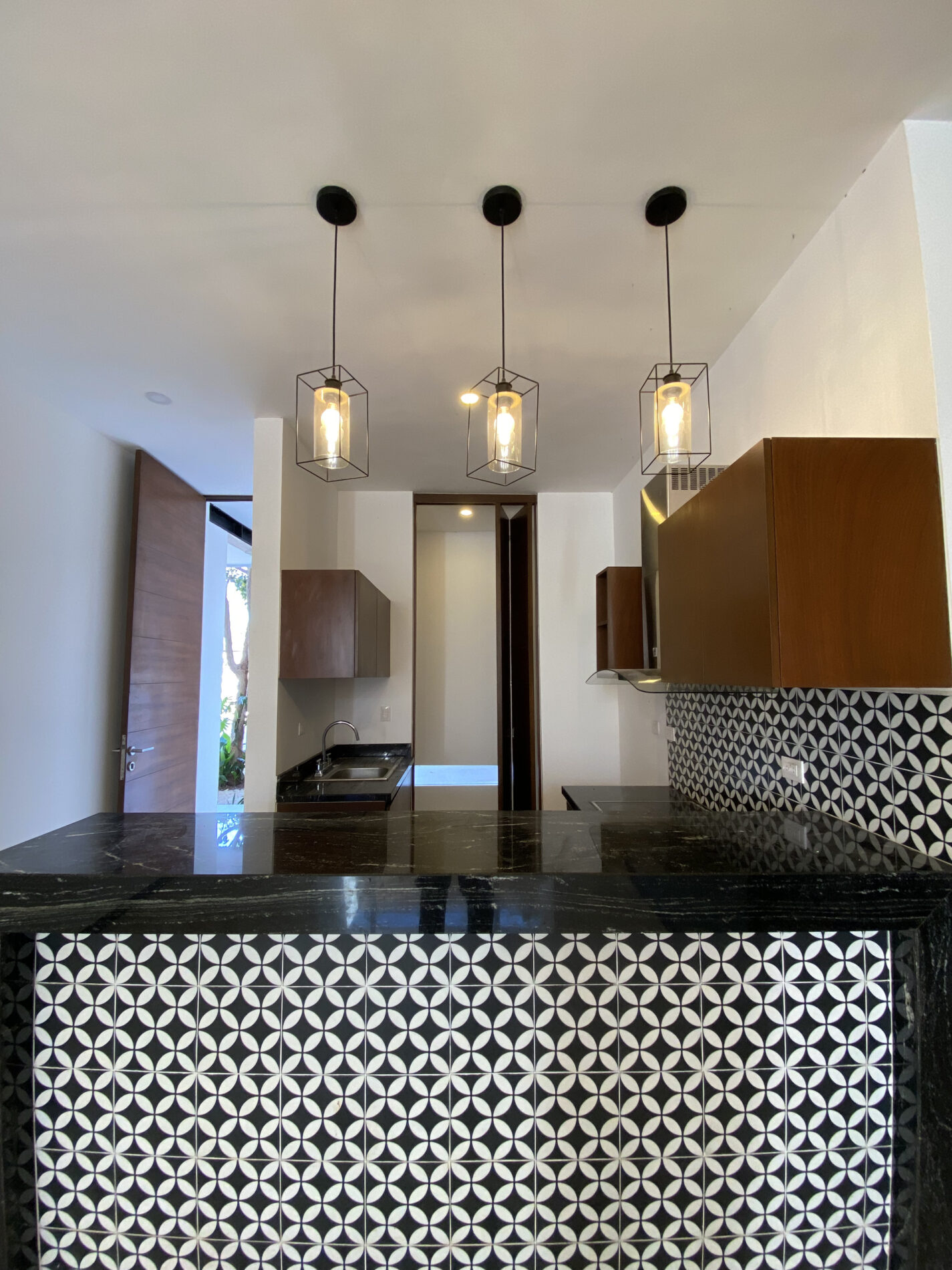 Equipamiento: carpintería en clósets, cocina y muebles de baño, cristal fijo templado en baños, parrilla eléctrica, horno y campana eléctrica, lámparas decorativas en barra, aires acondicionados, cortinas y ventiladores.