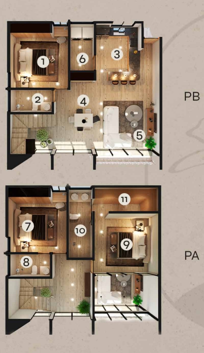 El Penthouse se ubica en el último piso y cuenta con 3 niveles.