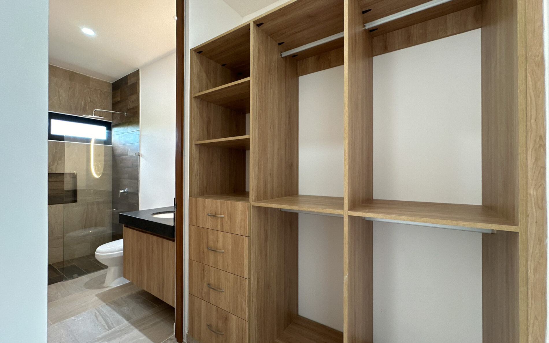 – Recámara secundaria con vestidor, baño completo y salida a un balcón corrido con vista al jardín trasero