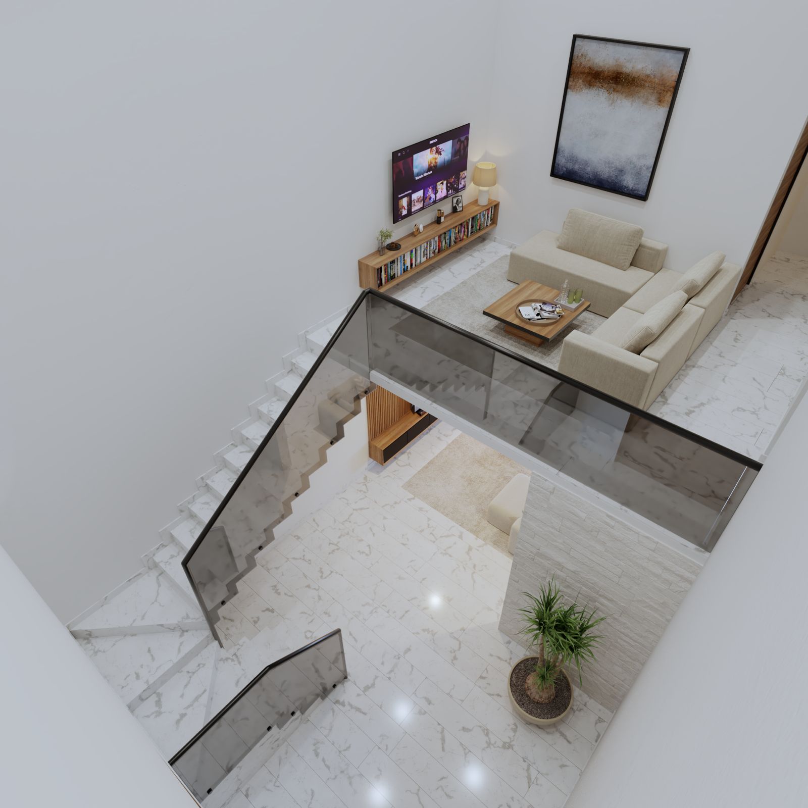 • Sala de TV con vista preciosa a la doble altura