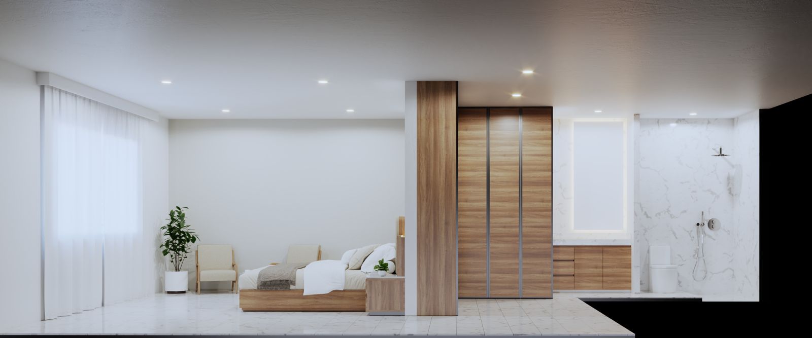 – Con vestidor en carpintería premium y baño completo con:
