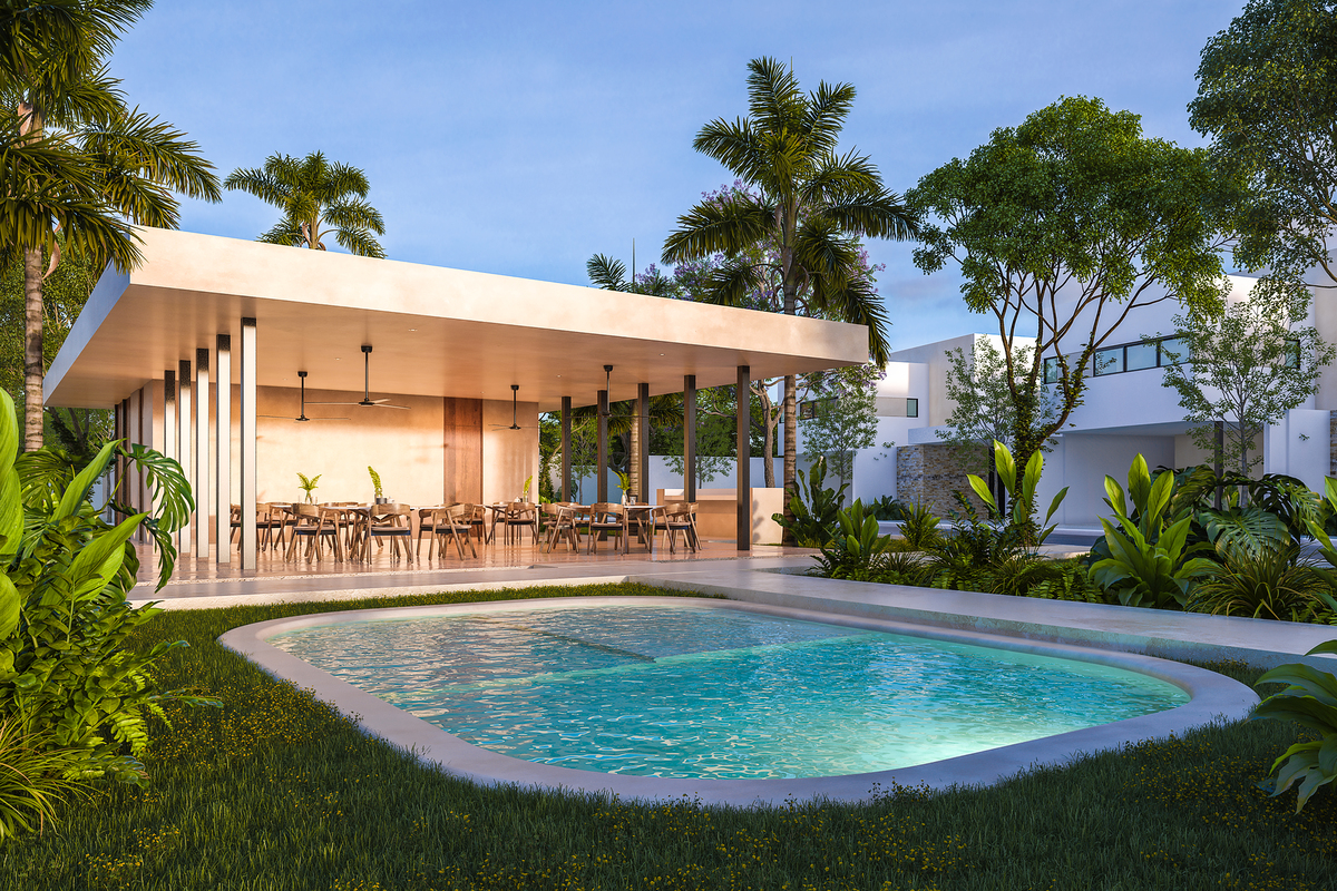 Casas creadas por el reconocido arquitecto Arturo Carrillo, ganador del Premio Obras CEMEX 2021, con espacios amplios, entrada angular para mayor privacidad y acabados como granito, mármol y piscina con chukum.